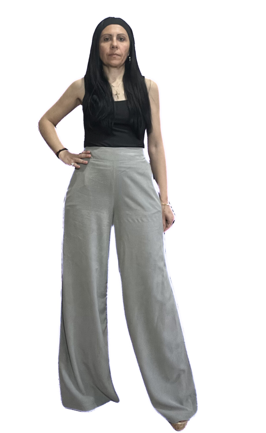 Παντελόνα ELLI ψηλόμεση σατέν γκρι