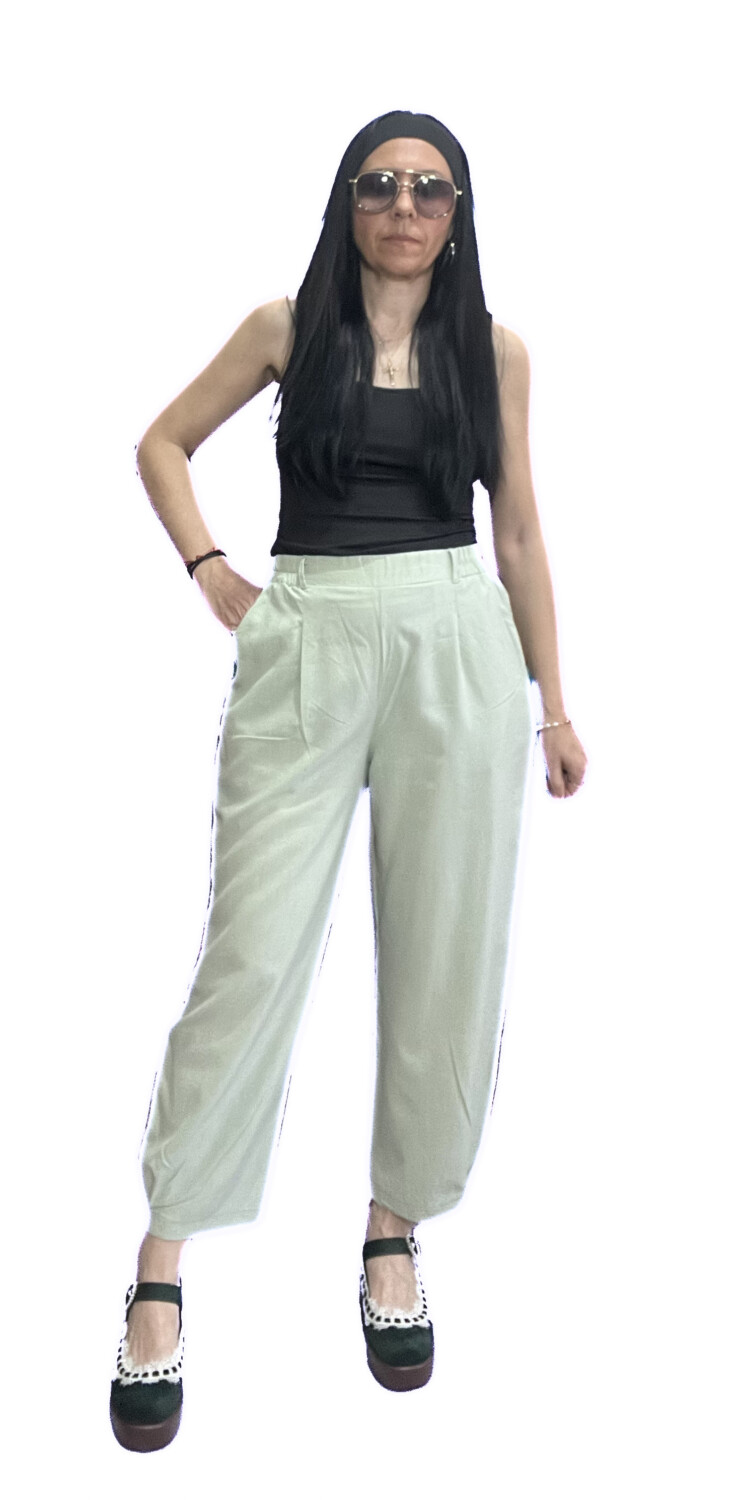 Το παντελόνι που δεν θα θέλετε να αποχωριστείτε . Η ίσια γραμμή του κολακεύει κάθε σωματότυπο , ενώ η ιδιαίτερη πένσα στο ρεβέρ προσθέτει μια hing -fashion πινελιά . Το λάστιχο στο πίσω μέρος το καθιστά όσο άνετο είναι ένα legging , αλλά με την πολυτελή εμφάνιση του υφάσματος Tencel.