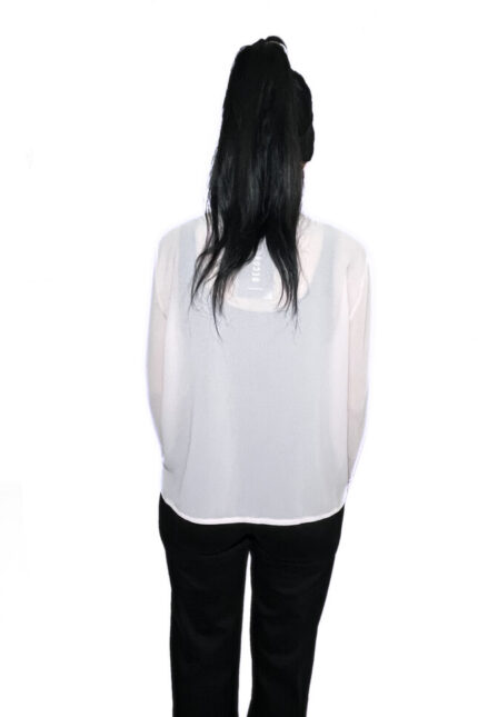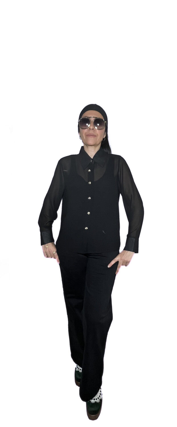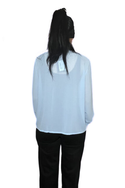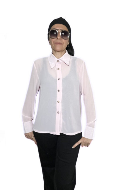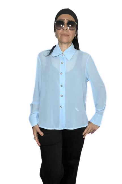 Mακρυμάνικο πουκάμισο μονόχρωμο με γιακά , ύφασμα see through σε κανονική γραμμή 100%polyester.