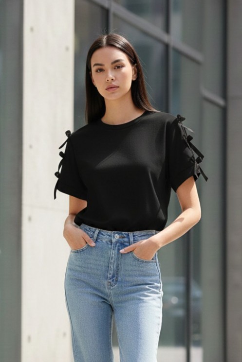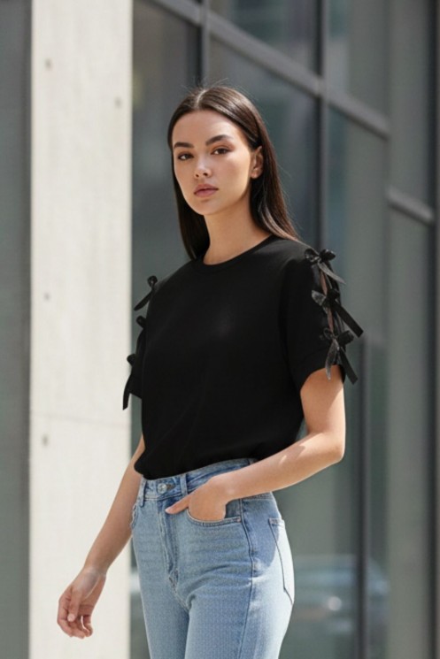 Τ-shirt με Φιόγκους-Μαύρο