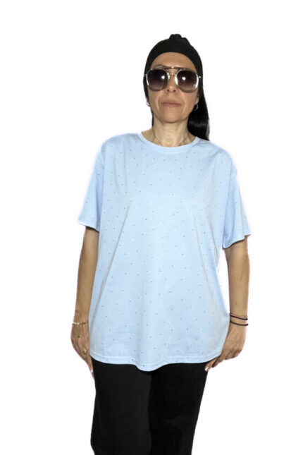 Το μπλουζάκι είναι με τετράγωνη λαιμόκοψη και ελαστικό ύφασμα.