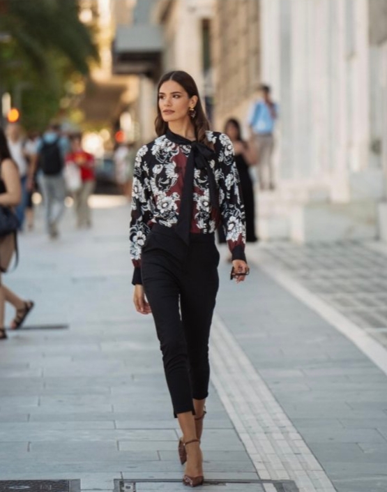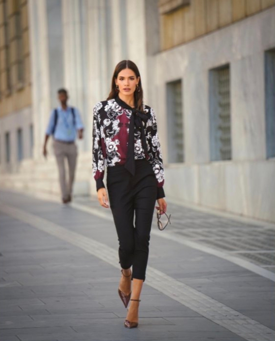 Το απόλυτο print της σεζόν και σε μπλούζα με ενσωματωμένο φουλάρι. Σε crepe satin ποιότητα.