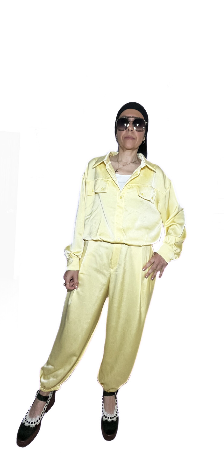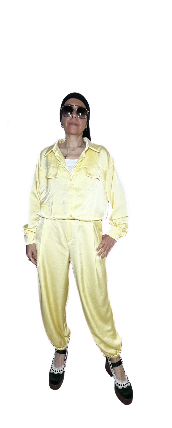 Ένα σύνολο σατέν πολύ άνετο που μπορείς να το φορέσεις από το πρωί ως το βράδυ.
