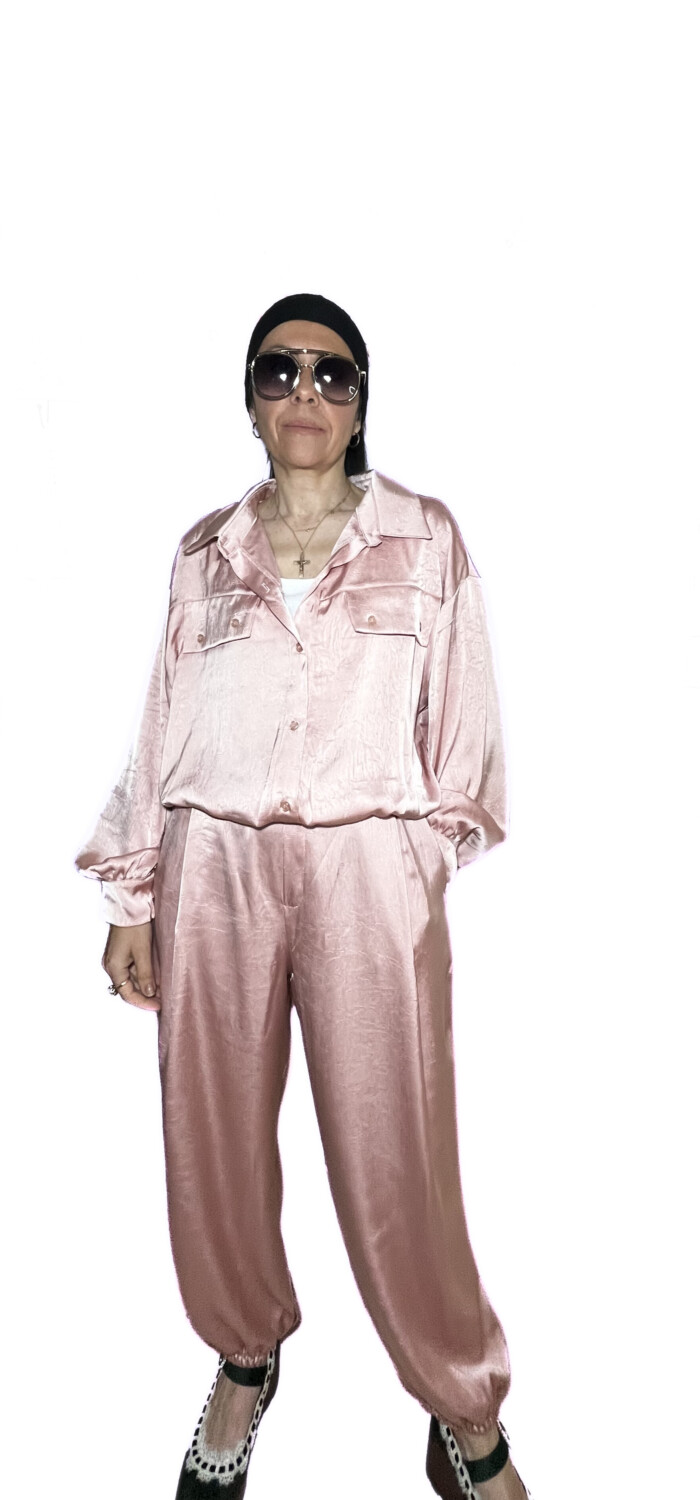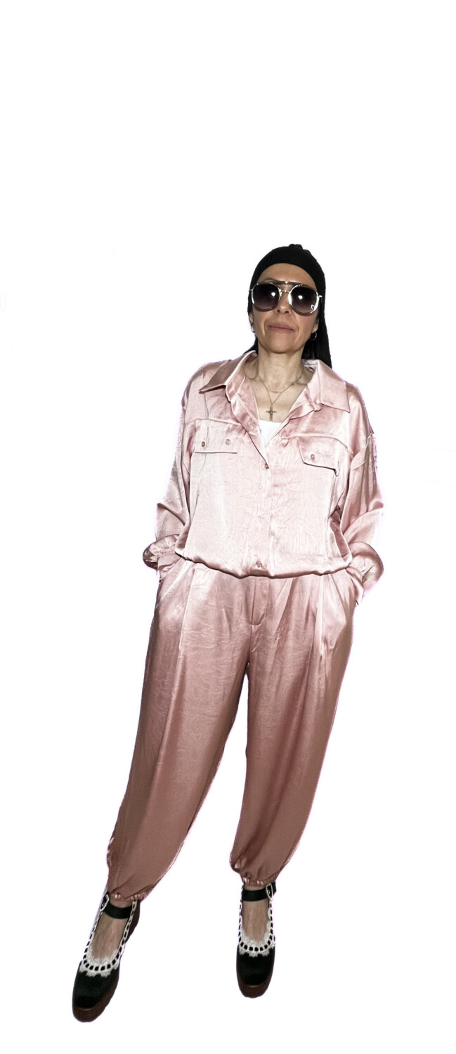Ένα σύνολο σατέν πολύ άνετο που μπορείς να το φορέσεις από το πρωί ως το βράδυ.
